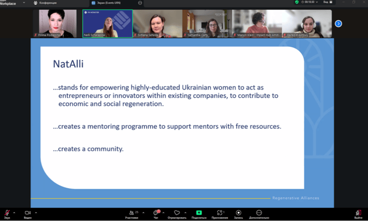 Проєкт спрямований на підтримку високоосвічених українок у самореалізації як підприємиць, інноваторок та лідерок у вже діючих компаніях, сприяючи економічному і соціальному відновленню Європи. Для цього створено NatAlli Platform – віртуальну платформу з безкоштовними інструментами, модульними програмами та ресурсами для менторів і учасниць, які допомагають розвивати підприємницькі знання та навички.