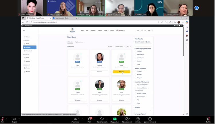 Ця зустріч була присвячена обговоренню ефективних практик менторства, спрямованих на підтримку жінок, їхню соціальну інклюзію та розвиток підприємницьких ініціатив у Європі. Учасники з різних країн обговорювали реалістичні сценарії менторських взаємодій, засновані на досвіді українських і новоприбулих жінок, які відновлюють кар'єру після вимушеного переміщення.